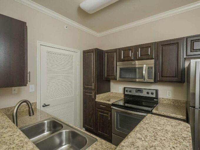 Within the walls of this community’s studio, one, and two-bedroom apartments, residents will discover an oasis of luxury. High-end features including granite countertops, hardwood floors, and custom framed mirrors come standard, elevating the essence of refined living. For those seeking an extra touch of sophistication, select units boast 11-foot ceilings, state-of-the-art stainless steel appliances, and in-home washers and dryers.