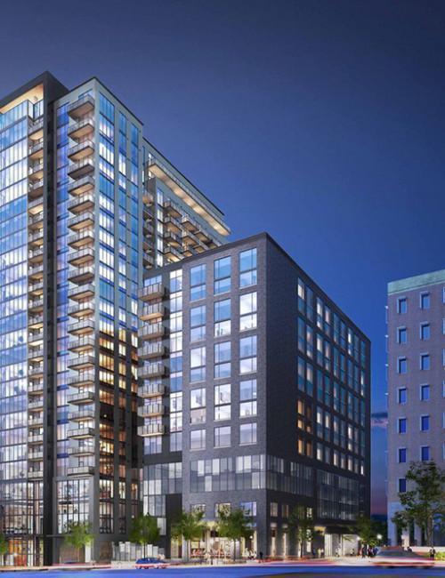 This controlled-access community offers a 24-hour resident concierge, a terrace with luxe pool and cabanas, a state-of-the-art fitness center with Peloton, a sundeck with lounge seating, a bar area, a resident lounge, a fireplace lounge, high-speed elevators, Amazon Package lockers, and more.