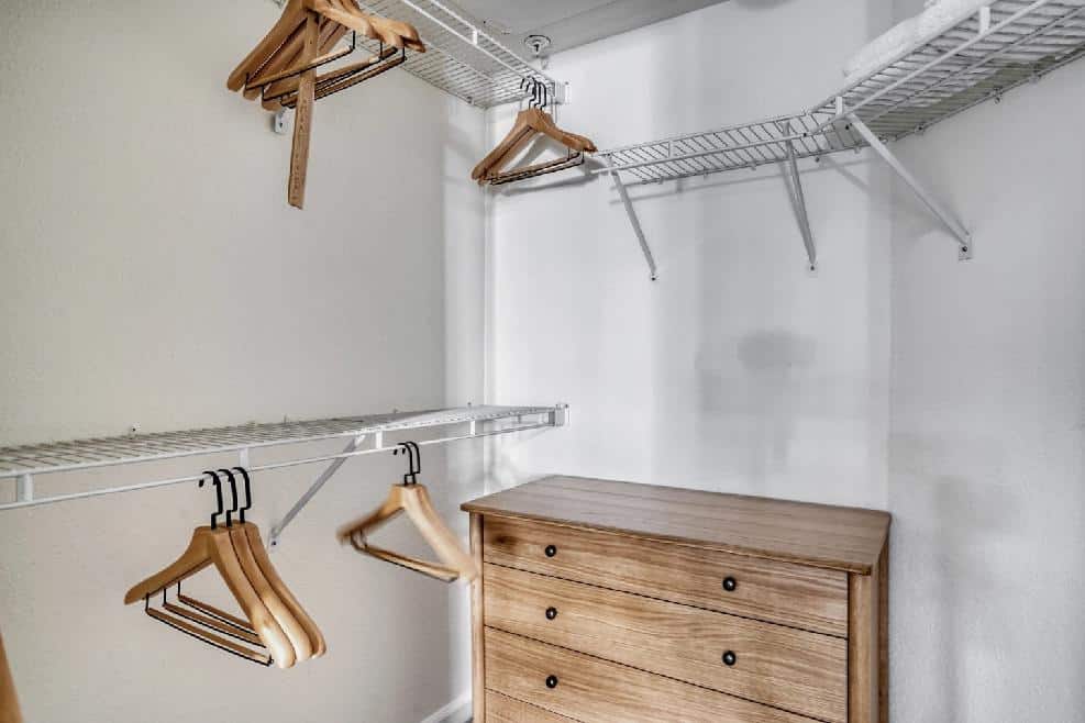 The apartment comes fully equipped with everything you need to feel at home, including a fully equipped kitchen, linens, towels, and dishes. High-speed Wi-Fi and home office setup, complete with a working desk, office chair, and desk lamp, make it easy to work from home.